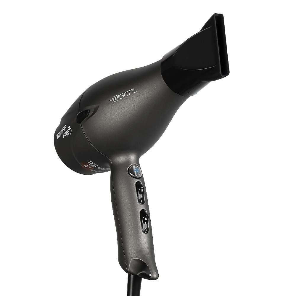 Introducing the Fox Ion 3 Digital Professional Dryer, engineered with a revolutionary digital motor that's 5x more durable and 50% lighter than traditional dryers. Achieve versatile styling with the included two specialized nozzles. The cool shot button sets your looks with a blast of cold air. Featuring ceramic and ionic technology, this dryer ensures smooth, frizz-free results with enhanced shine. Experience professional power and advanced technology in a remarkably lightweight design!